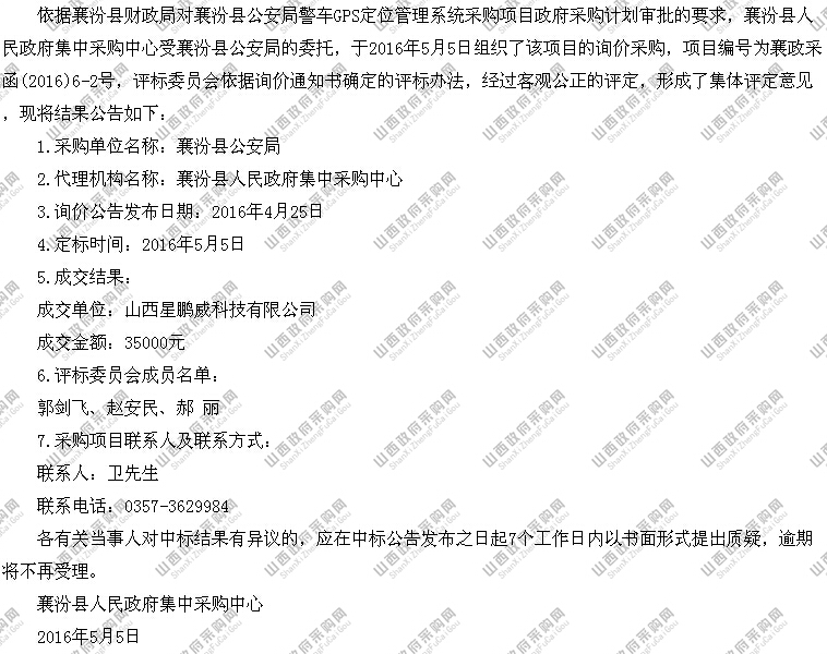 恭喜星鹏威成功获得襄汾县公安局警车GPS定位系